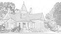 One queen bed, app-enabled television, shared turret bath with clawfoot tub and walk-in shower.